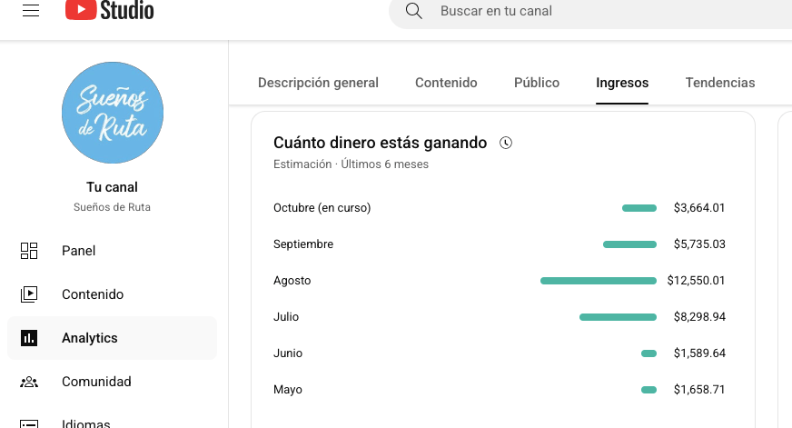 Esto es lo que genera hoy mi canal.